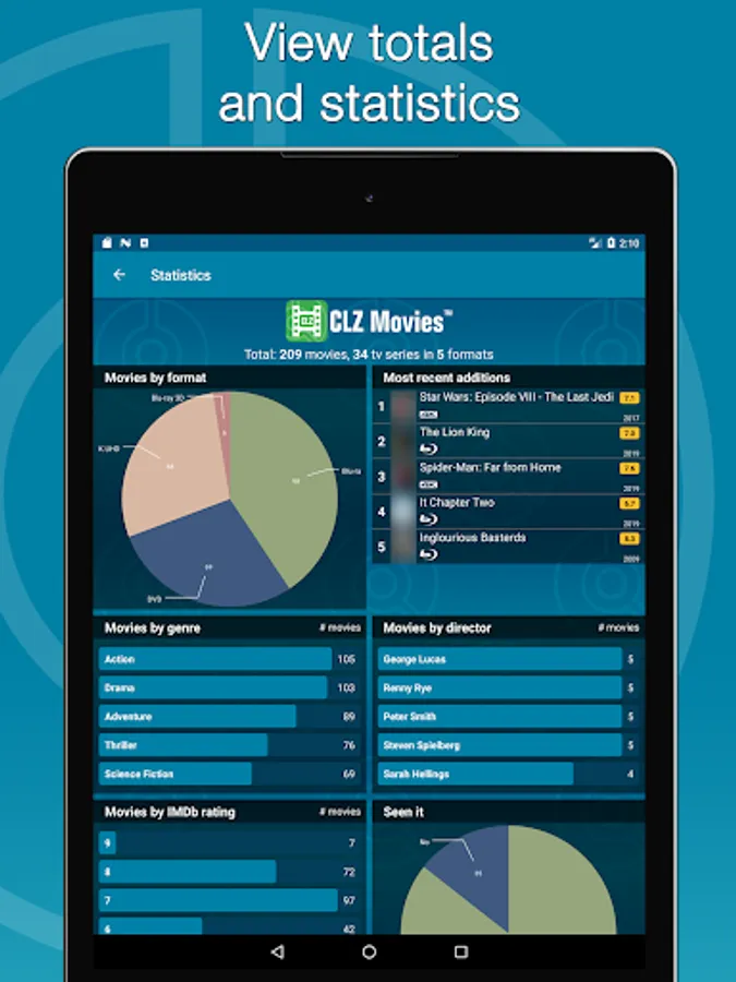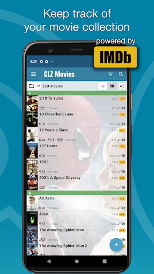 Sort by title, year, runtime, IMDb rating, date added etc.. Group your movies into folders by format, direct, genre, year, etc... Or just use the search box top right.