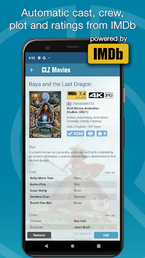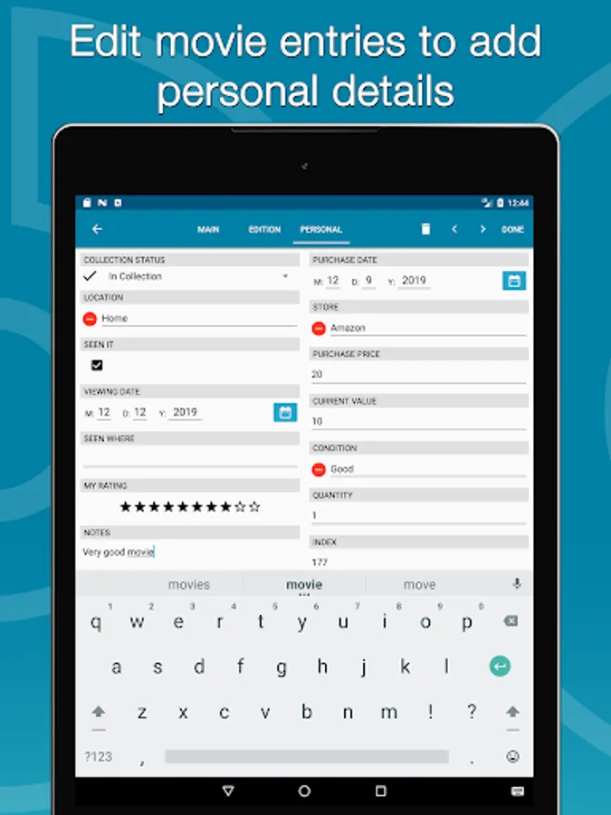 * Easily add movies to your movie inventory, using our CLZ Core online movie database