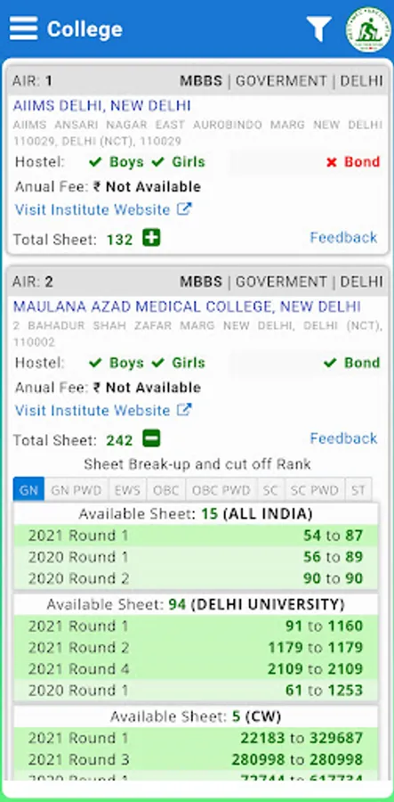 This app will help you to get dream college based on your rank in NEET.