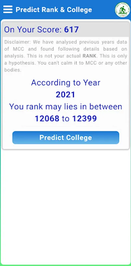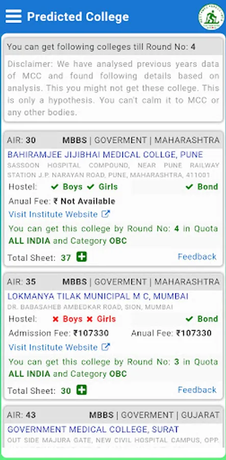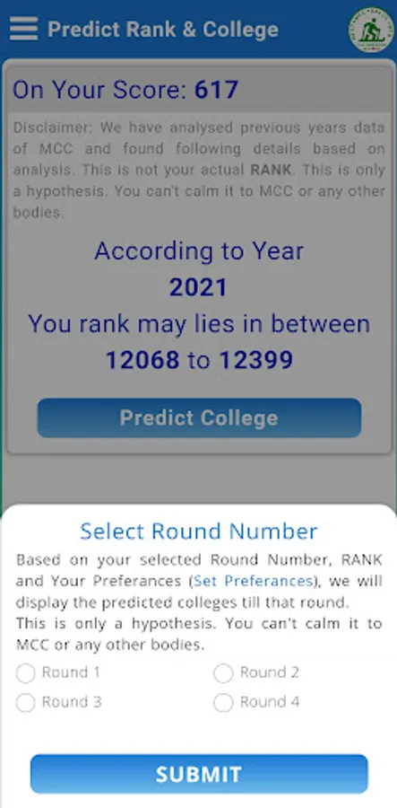 Disclaimer: This is not an official app of NEET. It is for educational purposes and helps students in selecting their college. Data are collected from website: https://mcc.nic.in/ug-medical-counselling/. We have analyzed previous years data of MCC and found some useful data based on analysis. Its free for all, you can use it. We don't ask or capture any of your personal information like your name, mobile no, email etc. You can't calm shown details in this app to MCC or any other bodies.