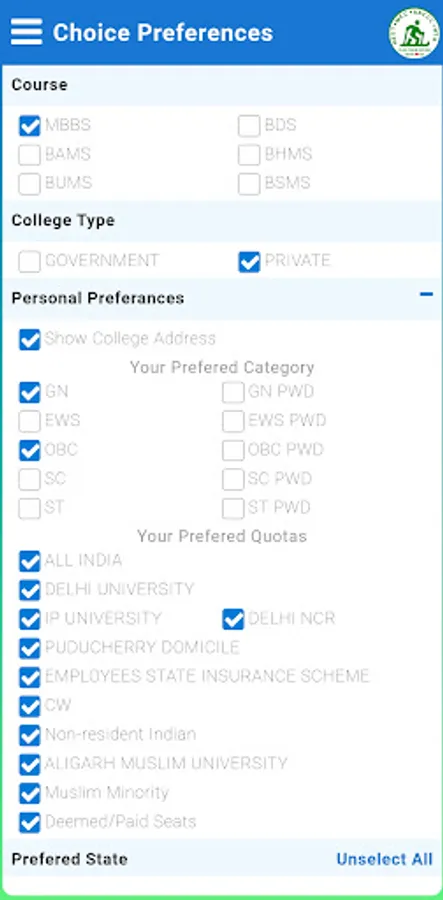 - Details of courses like: MBBS, BDS, BAMS, BHMS, BUMS, BSMS