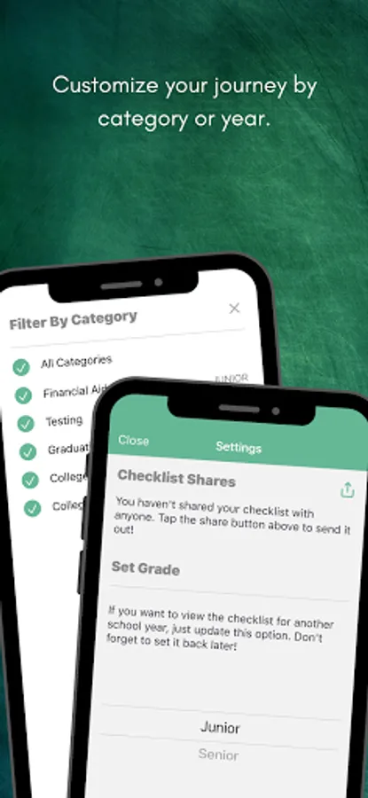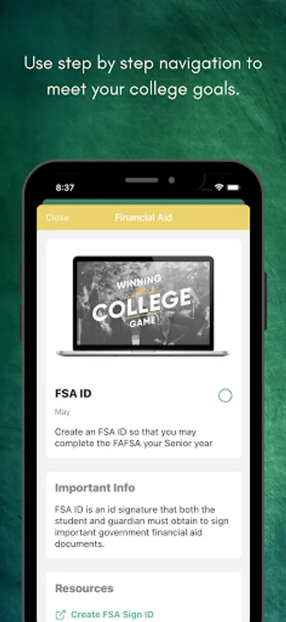 • Shareable accounts so that your family, friends, and teachers can monitor your progress and encourage you on your college journey.