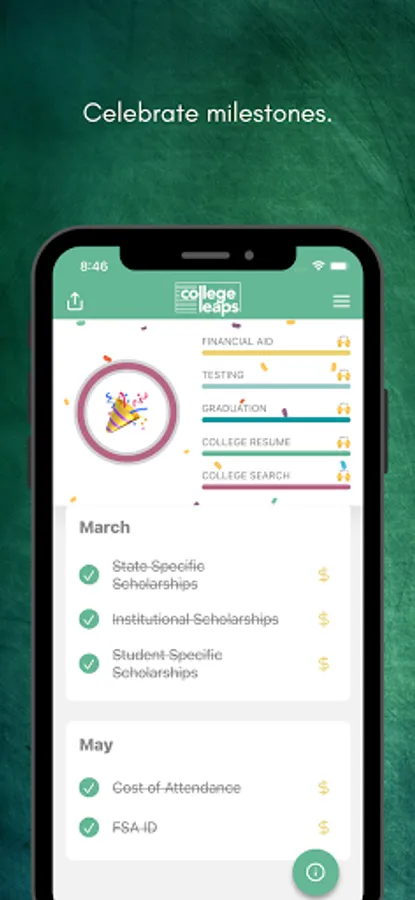 CollegeLeaps is a customized college admissions mobile app designed with the aspiring college student in mind. We take the bewilderment out of college admissions by providing you with a customized college journey encompassing your junior and senior years.