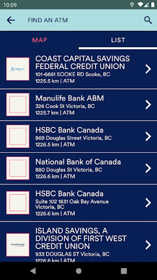 • Get directions to any ATM listed