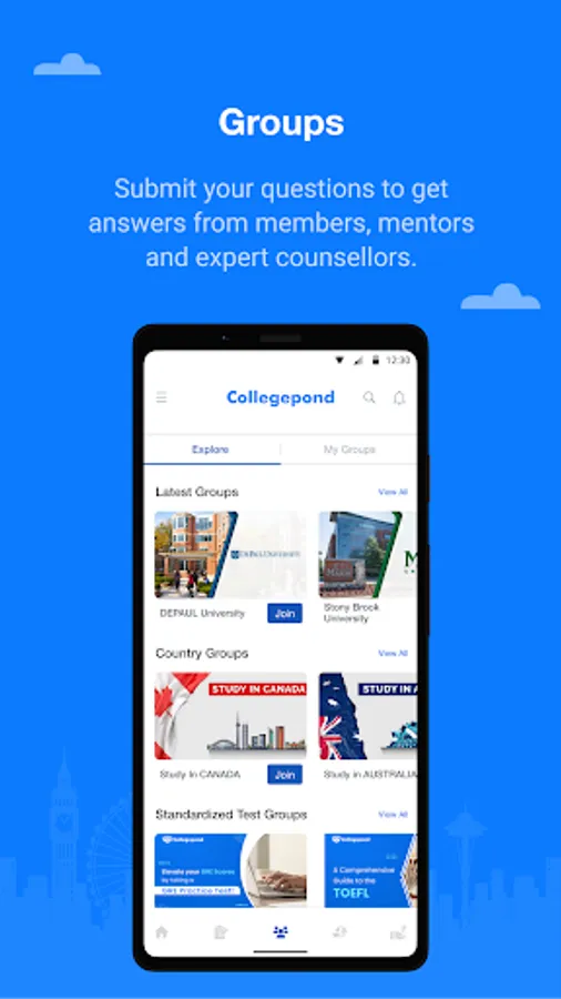 Groups: This peer-to-peer chat feature allows students to connect with like-minded individuals, fellow aspirants, and others to engage on a range of topics and get clarity on their collegiate and career decisions abroad.