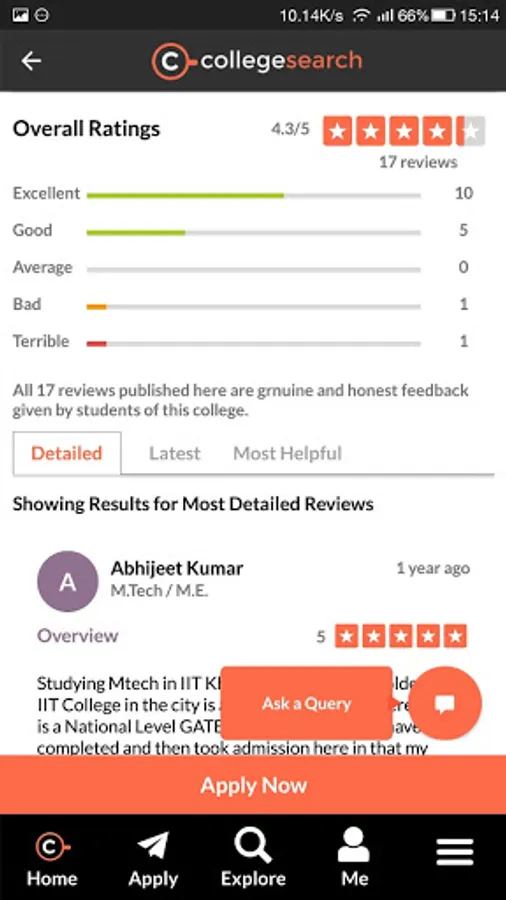 Finding the right college made easy with your ultimate college guide, the CollegeSearch community. With all the info on fees and placement along with latest reviews and campus tours provided by alumni on CollegeSearch, you can now get all your queries answered directly by counselors and other students in the community.