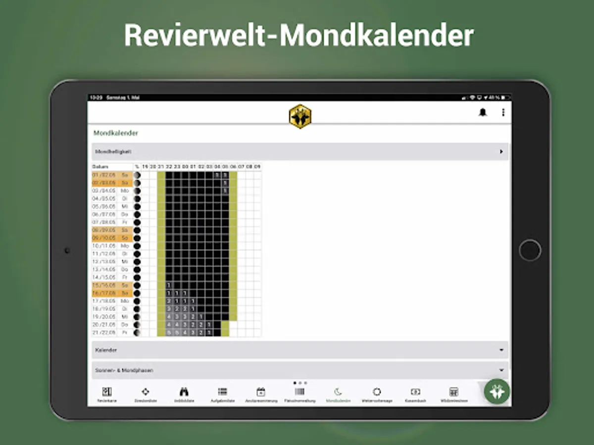 Revierwelt is always at your side with numerous supporting functions. No matter where you are: you and your hunters always have the area under control. All information about your hunt is available to you whenever you need it. All data is reliably synchronized between the district members and kept up to date.
