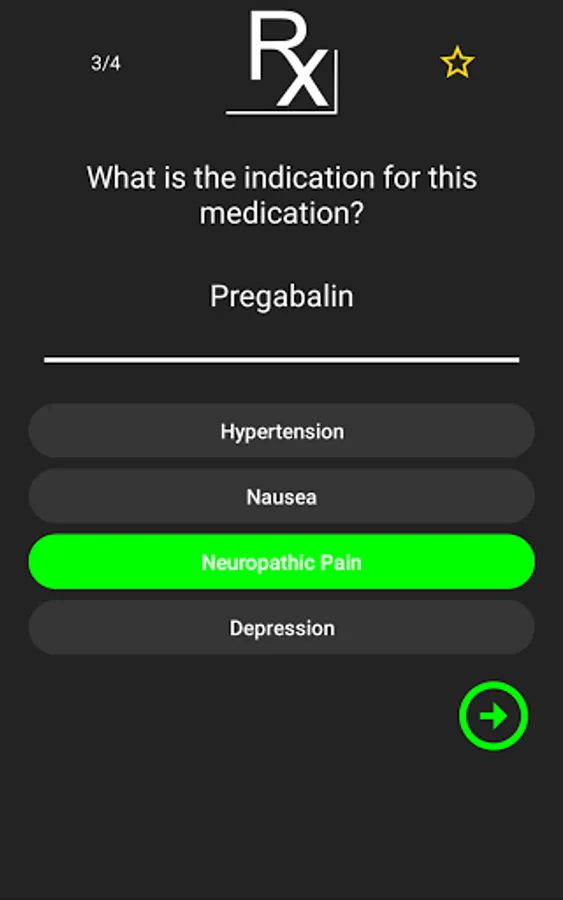 Each question requires you to select the correct answer among four different options. Questions will randomly generate options to ensure you never same question twice! The app will keep track of the amount of questions you got right or wrong during each study session.