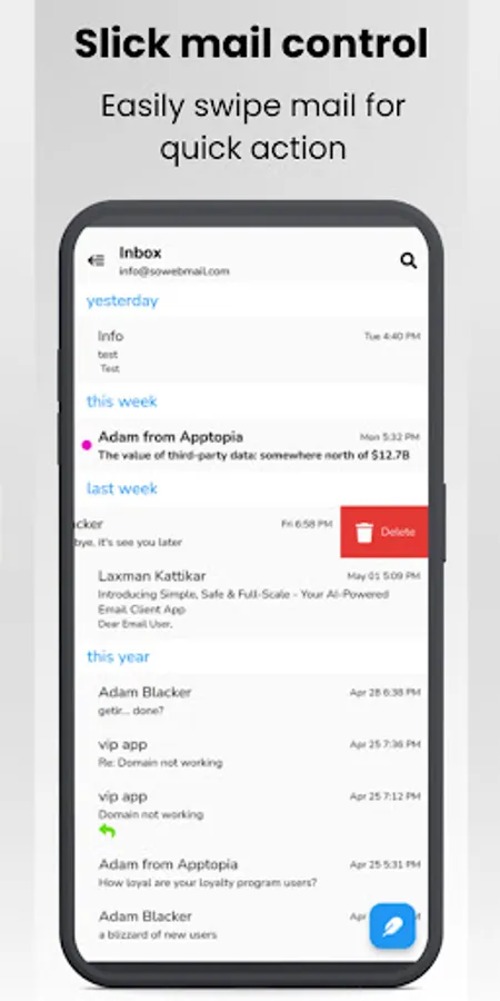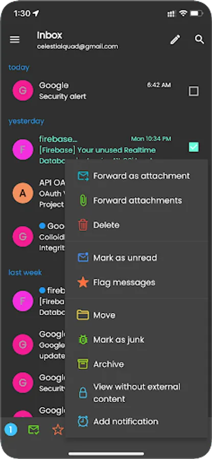 • Configurable swipe gestures that let you decide important actions to appear when you slide an email to delete, mark, flag or archive