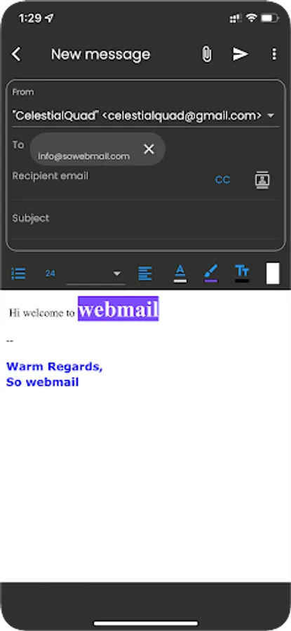 Simple and safe email application which will facilitate access, view and manage your email from your multiple email accounts at one place. Professional email client to handle your corporate email requirements. Stay upbeat with features of desktop email client power packed on your cellphone. Keep your critical device data safe from your all email recipients using latest security protocols and privacy protection. Webmail is available and supports multiple languages.