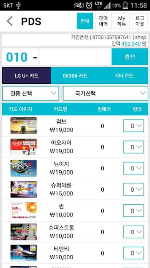 ㅇ Automatic charging service for prepaid phones of domestic SK, KT, and LG budget phone carriers