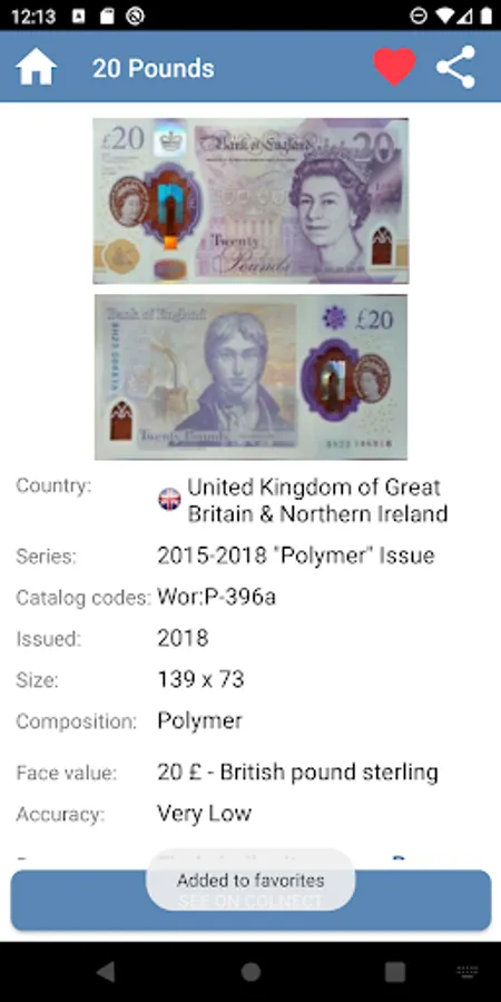 NOTE! Our app will quickly recognize ALL WORLD BANKNOTES ONLY IF you follow the instructions presented in it: fully crop the background and ensure image quality isn't poor. If for some mysterious reason your banknote wasn't recognized, please use our "Not found?" feature and a human will give you an answer and tips on how to improve search results.