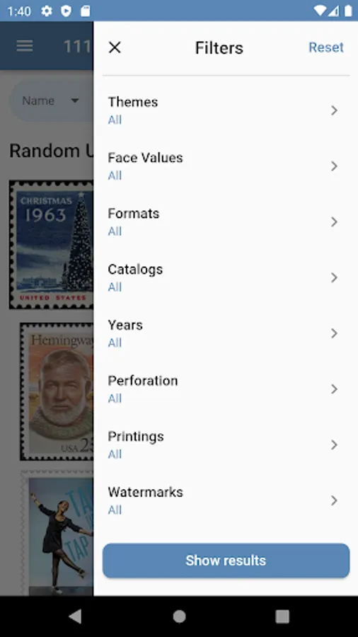 Filter the stamps using a variety of filter options: Years, Series, Face Values, Perforations and many others.