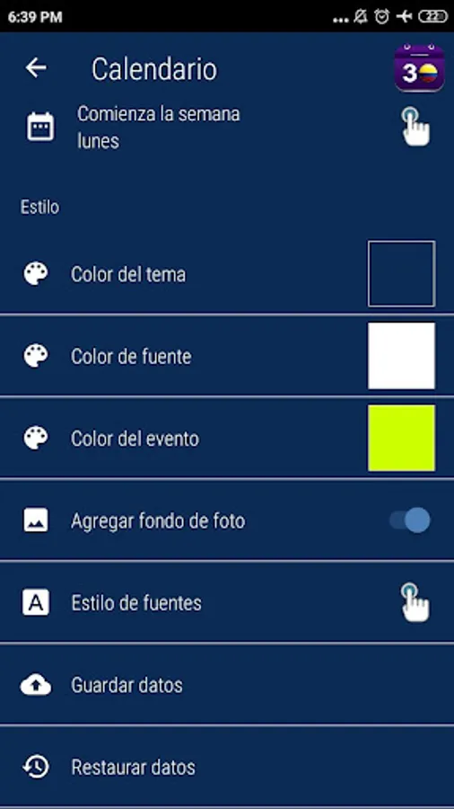 • Week Start – Choose whether you want Sunday or Monday to start the week.