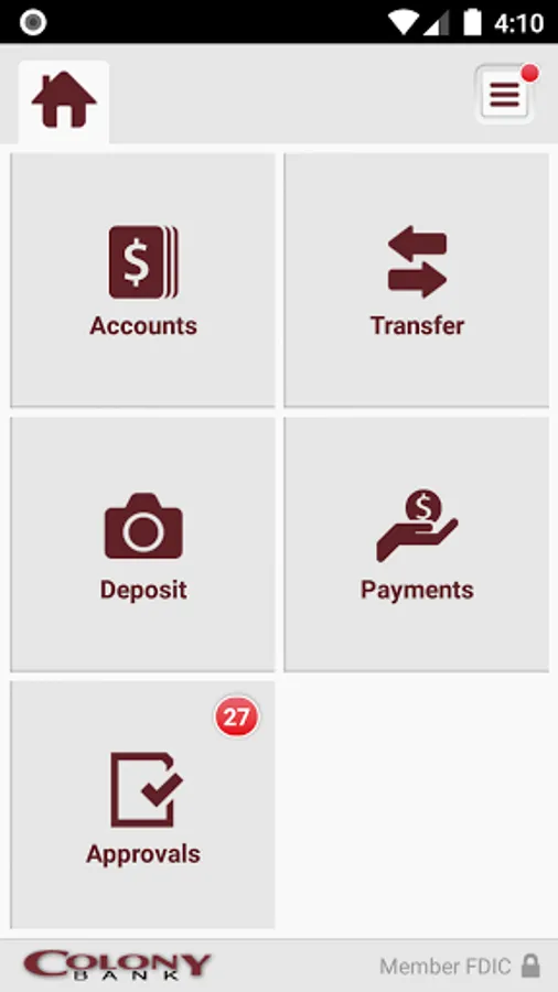 Getting started is easy. Simply download the app and sign on with your Colony Bank Business Online user credentials. [No additional fees apply.1]. For more information about Colony Bank Business Mobile services, please visit www.colonybank.com or call us at 1-855-389-2265.