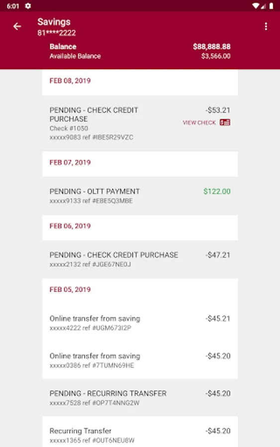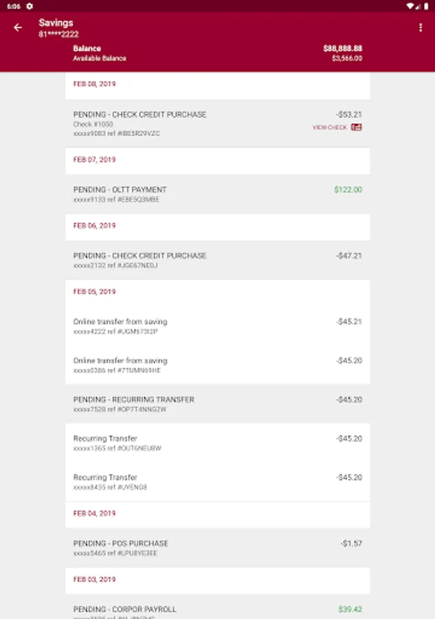 -Detailed transaction history, including date, location, amount, and more—just like using online banking