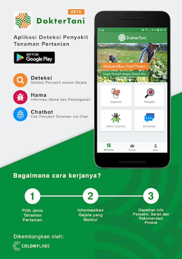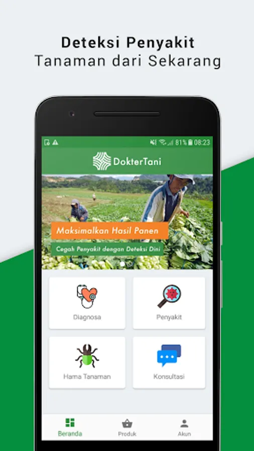 Doctor Tani is a mobile application to help farmers detect agricultural diseases. With artificial intelligence technology, applications can analyze disease diagnoses based on symptoms entered by the user. From the results of the analysis, the application will provide recommendations for actions to be taken. In addition, the application will provide recommendations on available products according to the disease.