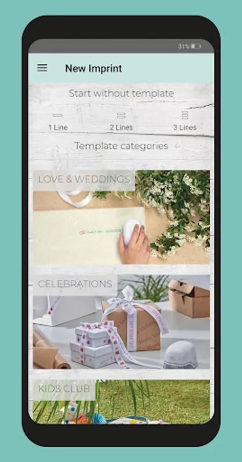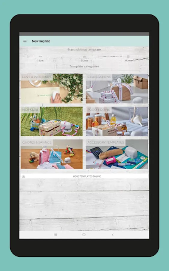 The APP already contains more than 50 predefined templates, but of course, you can also easily create a new imprint from scratch! Upload your images as PNG or JPEG and integrate them in your designs. Combine them with own texts in any colour or format. Give your creativity free reign!