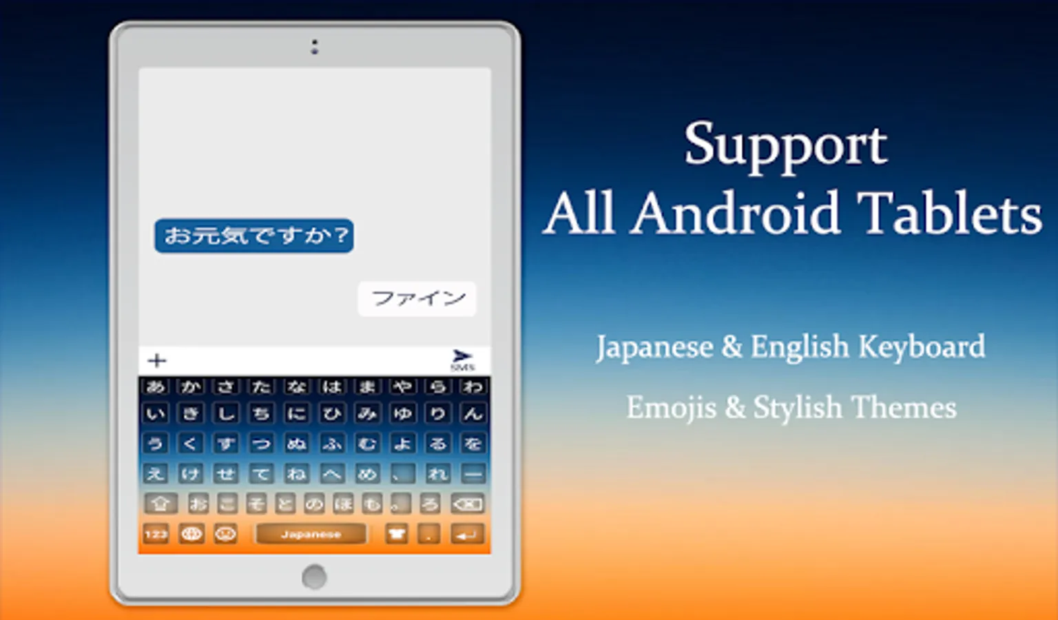 Japanese Keyboard is one of the best mobile Keyboard app for typing in Japanese language. Japanese Typing Keyboard allows the user to write and type message in Japanese language and Japanese text words using colorful themes. Send message, email, and update status in Japanese.