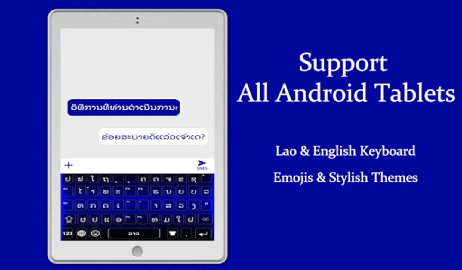 Lao Keyboard: You can compose emails in Lao language, post on social network and write someone messages through Lao Typing Keyboard. You can use Lao Keyboard to write text in Lao language. You can copy and paste Lao text anywhere through Lao Keyboard. Lao Typing app is useful for Lao people and Lao speaking people across the world. This Lao Keyboard app provides word suggestions to type in a fast way. Free Lao Language Keyboard you can write all Lao Alphabets, Lao letters and Lao words very quickly and easily. Lao Keyboard helps you to communicate with your world in your own language.