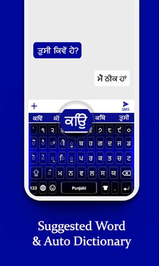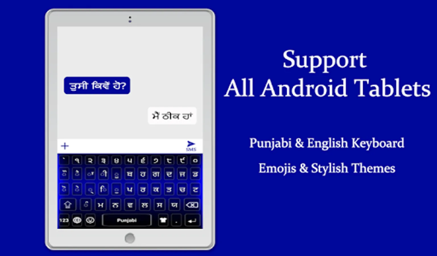 Punjabi Keyboard is one of the best mobile Keyboard app for typing in Punjabi language. Punjabi Typing Keyboard allows the user to write and type message in Punjabi language and Punjabi text words using colorful themes. Send message, email, and update status in Punjabi.