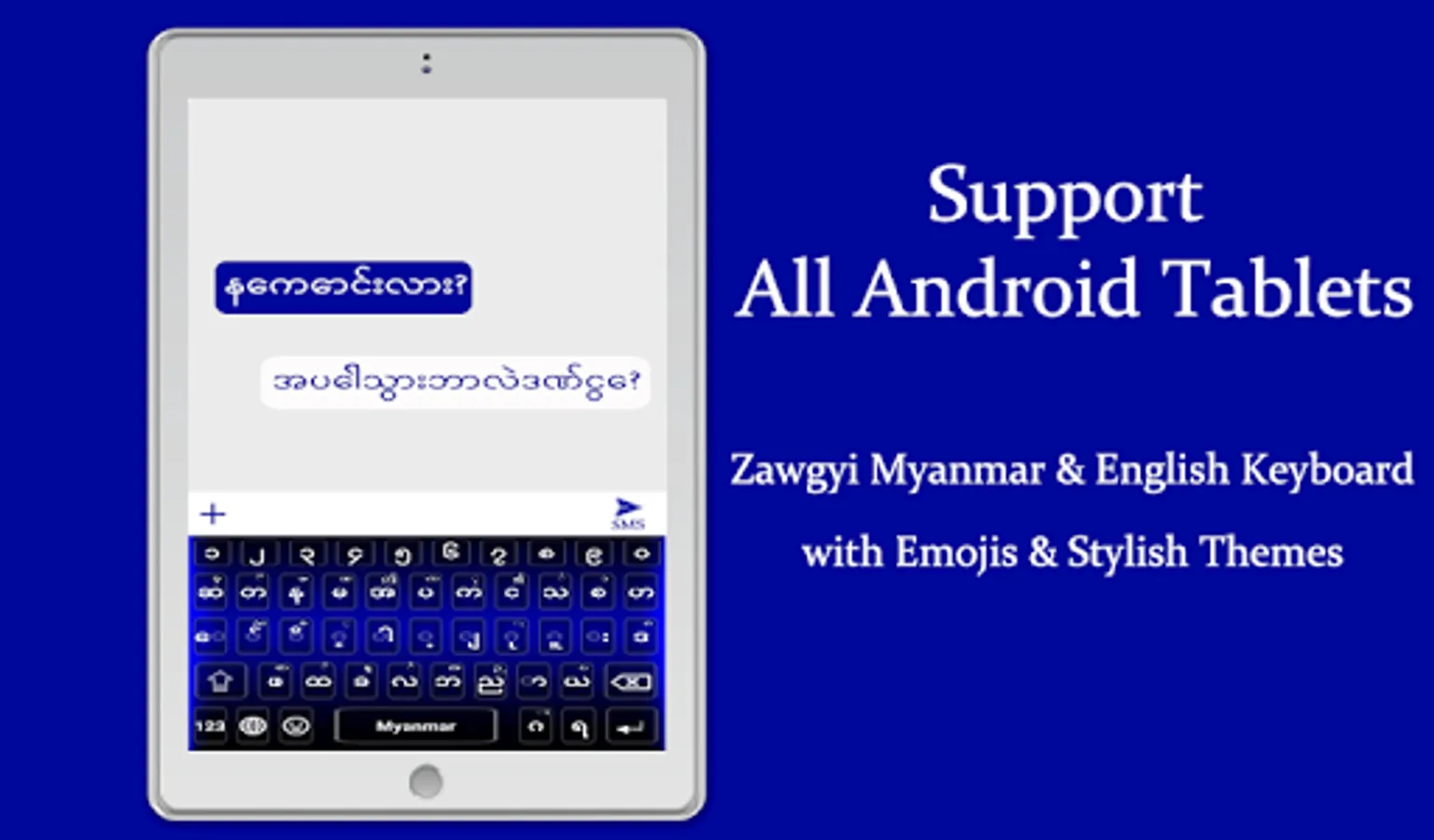 - Myanmar Typing Keyboard contains more than 1000 Emoji’s, stylish stickers, And cute gifs.
