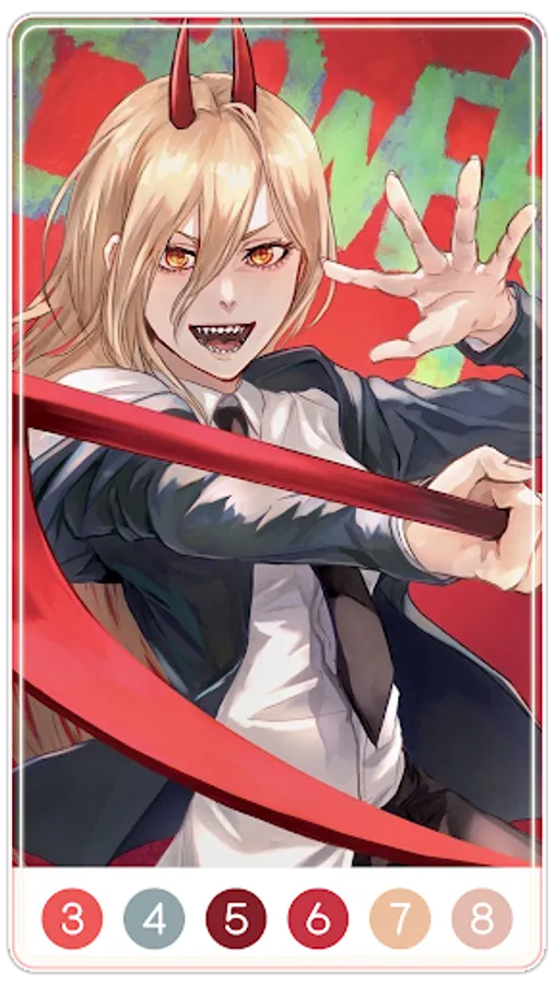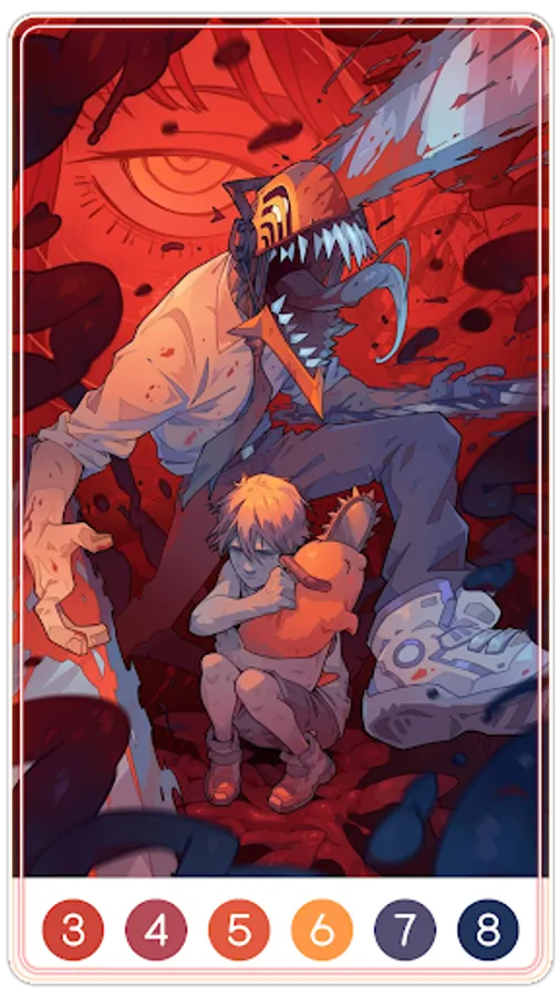 We always feel stressed out in daily life, here we offer you a free Chainsaw Man coloring book to relax yourself. In the coloring game by number you will enjoy the coolest experience of painting and creating artworks! And make the world become colorful and alive under your fingers!