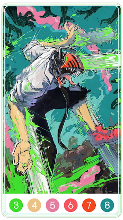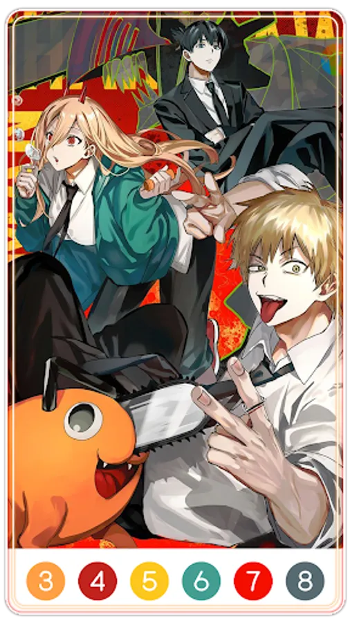 Download our Chainsaw Man Color by Number Adult Coloring Book app right now and paint by number beautiful Chainsaw Man coloring book with pleasure!