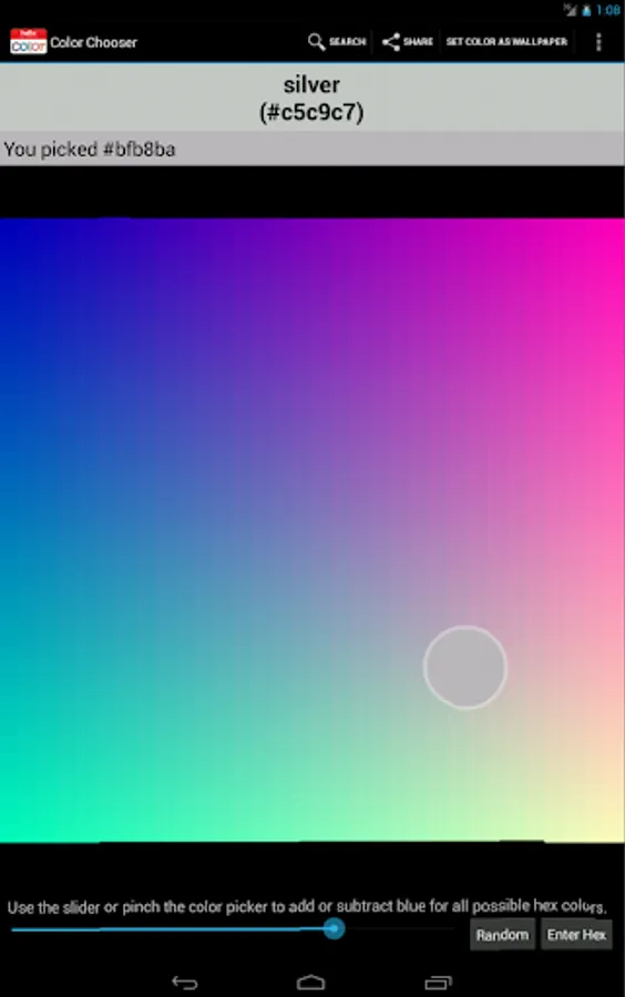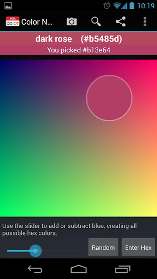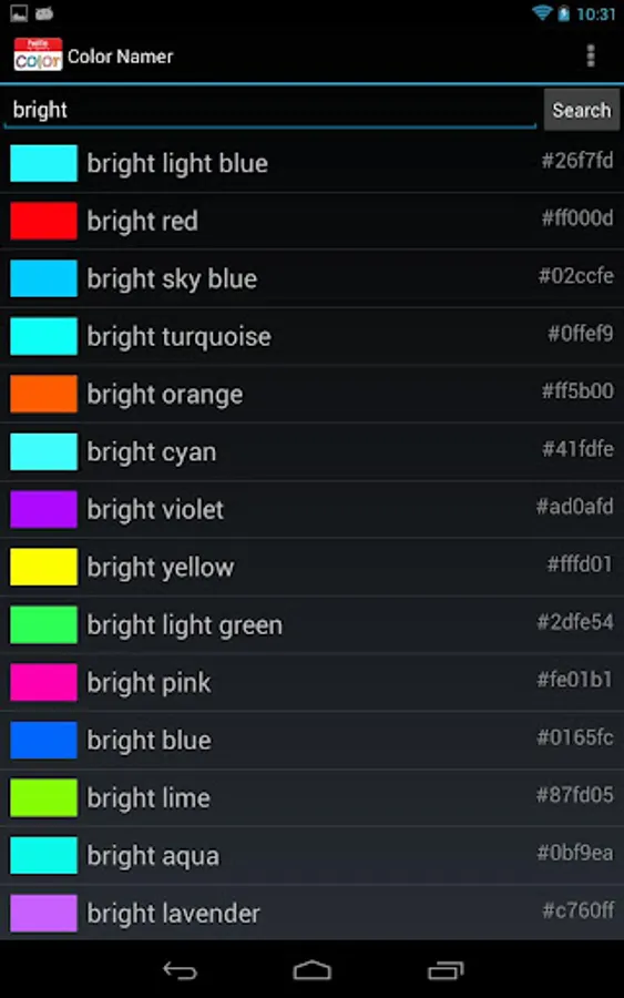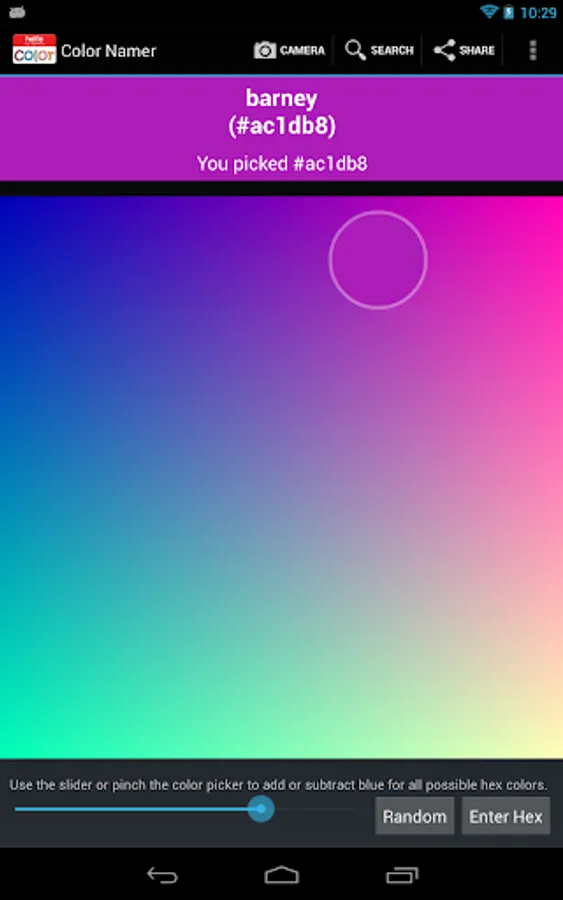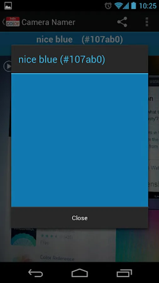 Color Namer lets you name colors in the world around you using your camera. You can also explore the whole named colorspace with a color picker, search through color names, and find names for hex values.