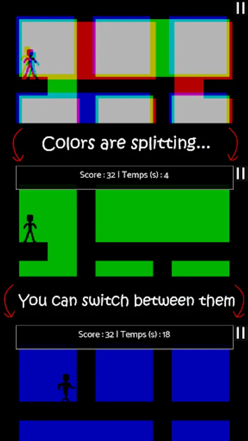 -Switch between three colors : red, green and blue and reveal the possibilities