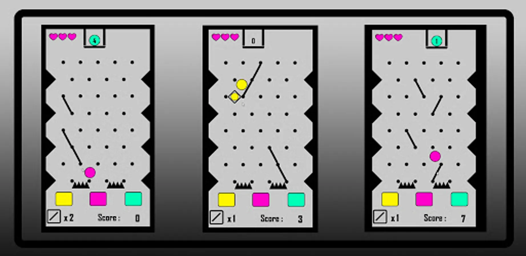 This game is a bean machine where a ball is released from the top and the player must help the ball to get to correspondent area(Matching Color).