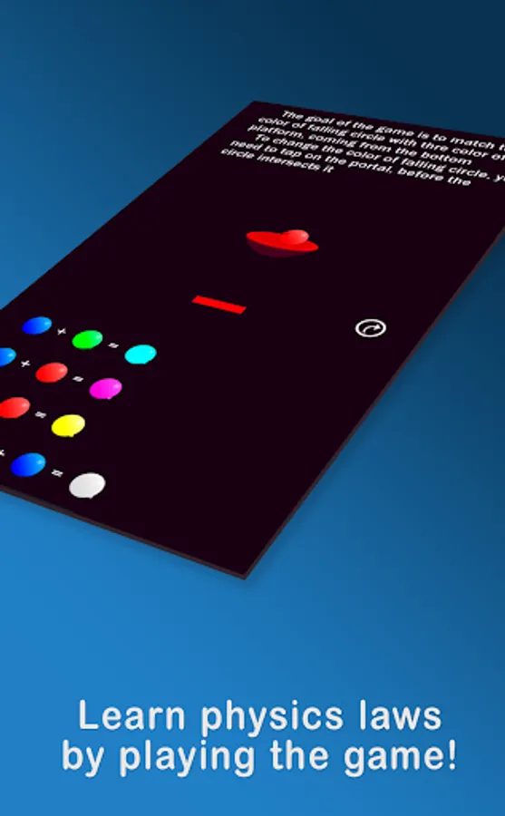 The goal is simple - make the color of falling circle to correspond to color of platforms, cooming from the bottom of your screen by taping on the portals!