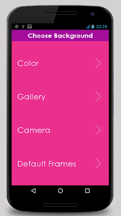 Choose a background for your collage (select from color palette, click an image, choose from Gallery or use default frames)