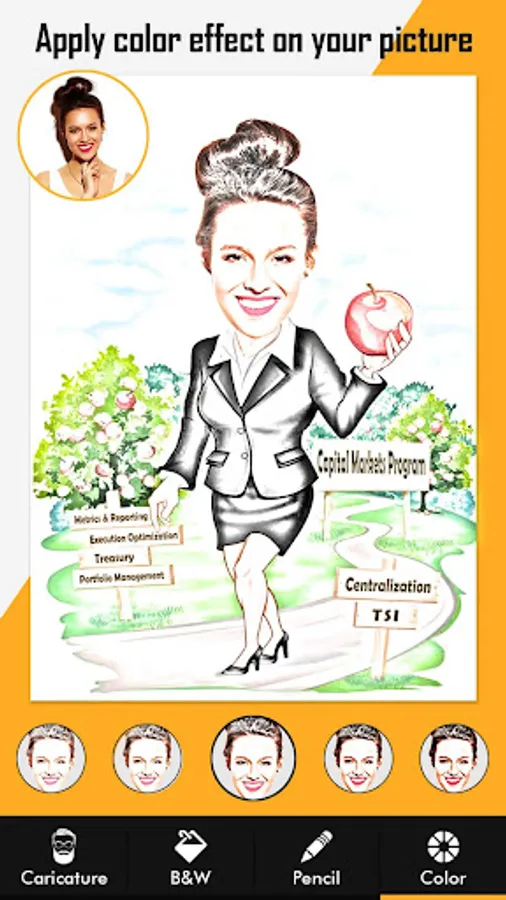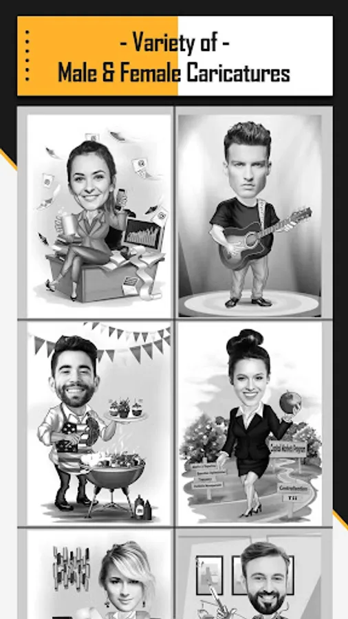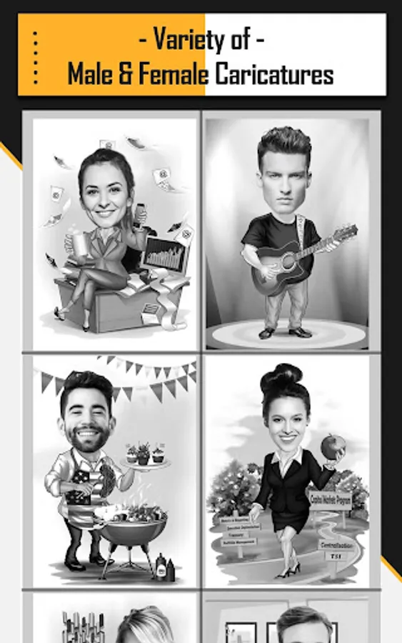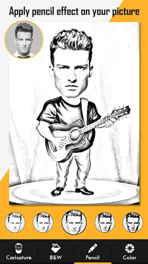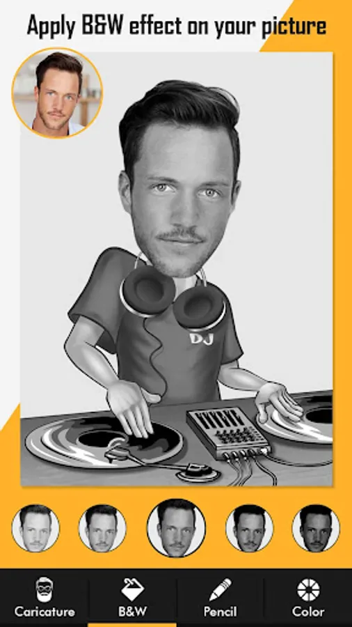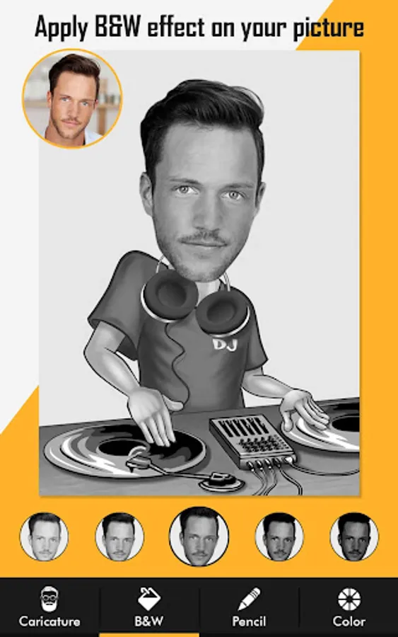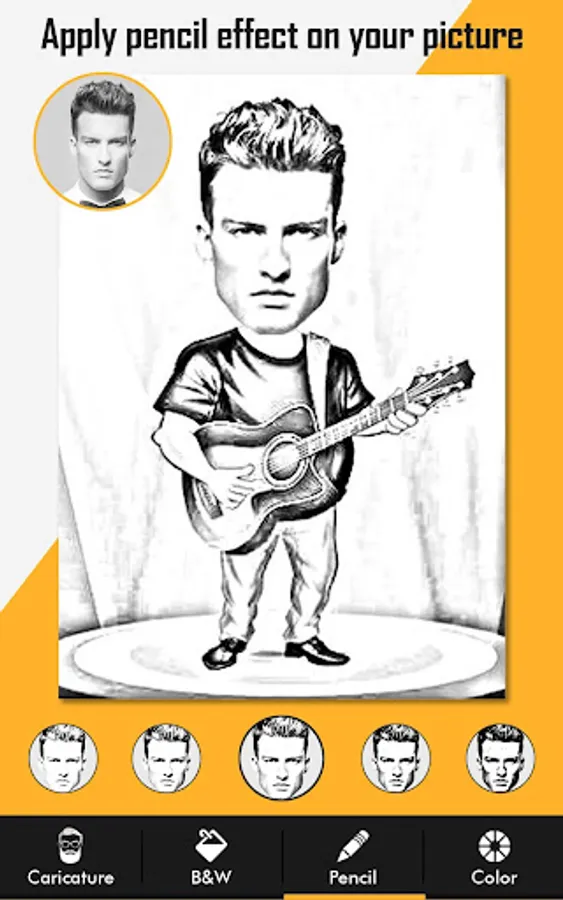 Change your Photos into hilarious caricatures with our free Cartoon Caricature Photo Maker. It allows you to turn your photo into a caricature. You can make your color, pencil, or black & white caricature within a few seconds. It brings a touch of humor to your life. Be a caricature artist. Share your own creativity with all. Best for men and women.