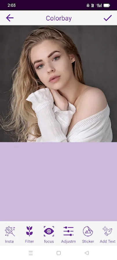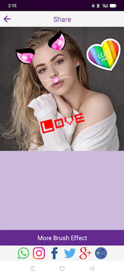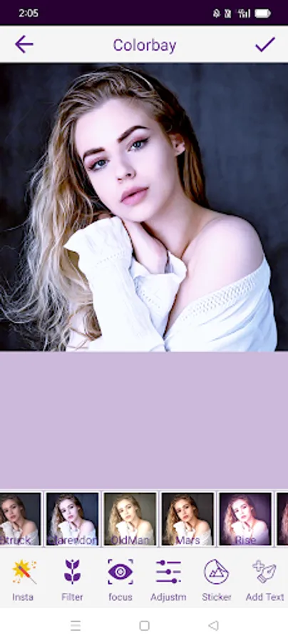 Image effects & filters: enhance your photo look by applying some of the available effects and filters which include Struck, clarendon, old man, mars, rise, april, starlit, lime, blueness, cruz, hue, saturation, exposure, contrast, temperature and more.