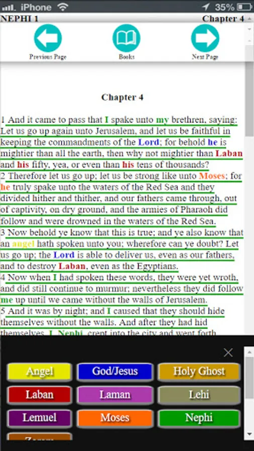 HOW IT WORKS: The Book of Mormon in C.T.R. (Color Text Referencing) is a color-coded study tool for the Book of Mormon; it takes each person writing, speaking and/or being referred to in the Book of Mormon and assigns him or her an individual color; the color-coding system is labeled at the bottom of each page; the reader will then know who is writing, speaking or being referred to in each sentence throughout the Book of Mormon.