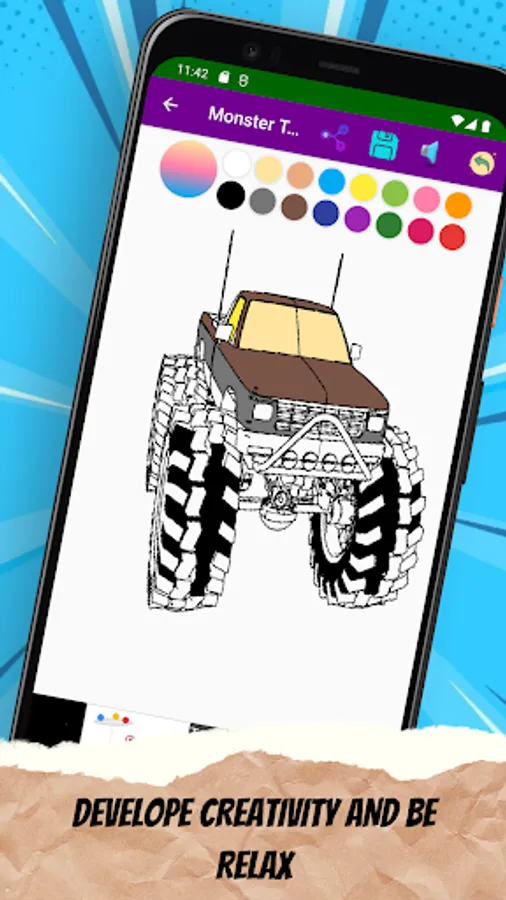 This app is Monster Truck Coloring Pages for everyone. This app contains many ideas of big truck; off-road, racing, speed car, etc. it's good to develop your art skill, sensor motoric and imagination. enjoy