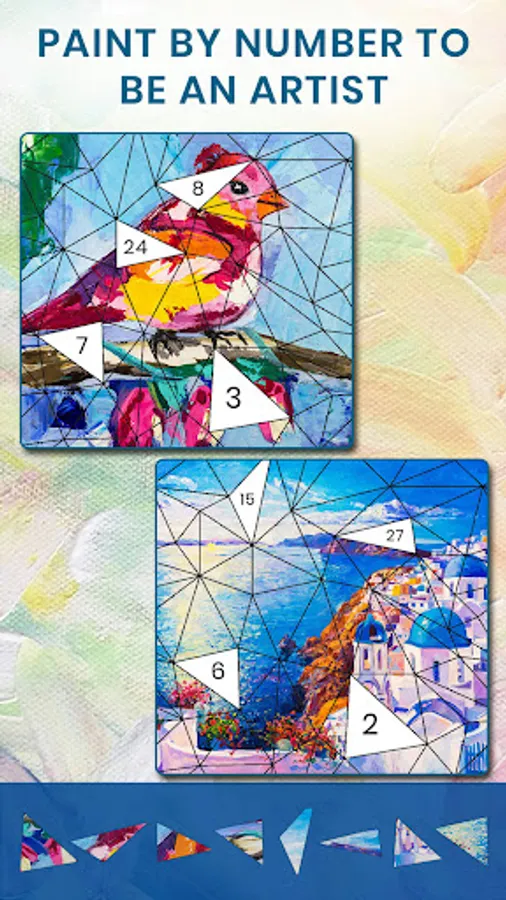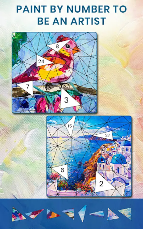 Hundreds of wonderful pictures are all free! And more update every day! Oil paint art by number is simple and easy to operate, never mind if you are not good at art drawing. You just need to follow the numbers place artwork pieces in the correct area to create a painting. Coloring has never been so easy, be an outstanding artist in Paint by Number, try it now!