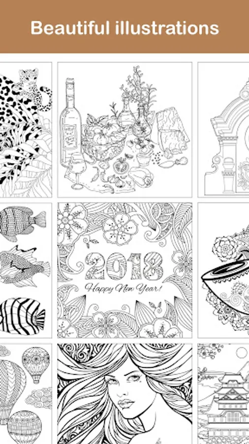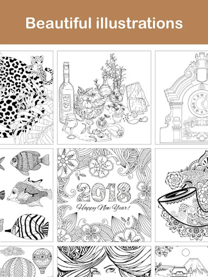 * Lots of beautiful illustrations and drawings to color, and more are coming