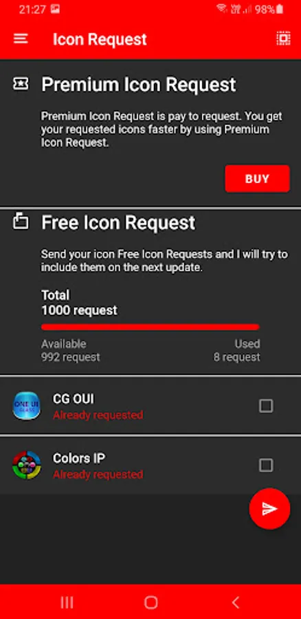 3.Select the icon, this will show your icon packs, select CG OUI and choose your icon, Built-in Search Feature within the App.