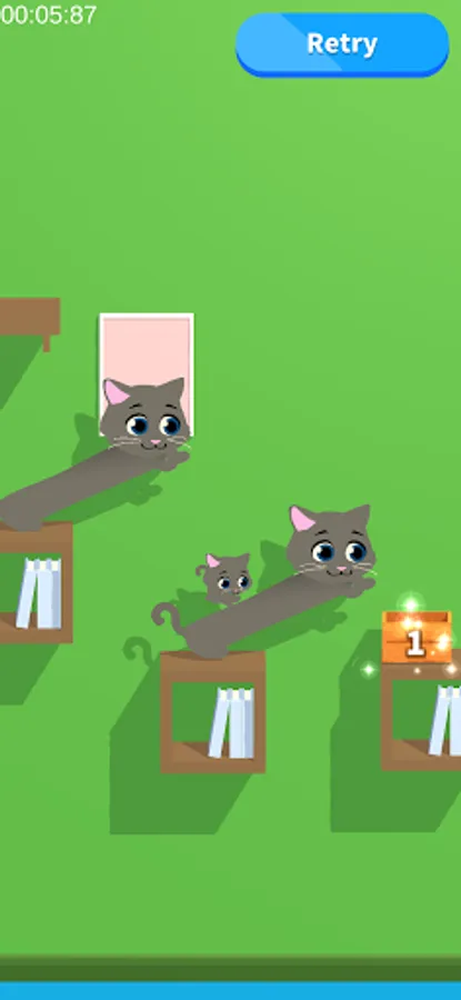 Stretch the cute mum cat across obstacles to rescue the cute kittens and help them reach safety.