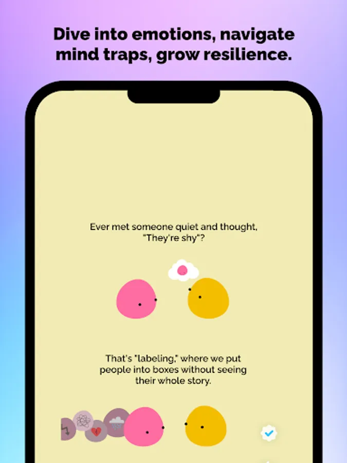 Even though it is widely acknowledged how important mental health is, people are reluctant to invest in it due to the lack of engaging mental health resources. Joyi is here to let you have fun while improving your mental health. It makes your moments joyful while teaching you important lessons, which, in the long run, help you to obtain a growth mindset, learn resilience skills, balance positive and negative emotions, and become antifragile. We make it easy for you to discover your own path to sustainable happiness.