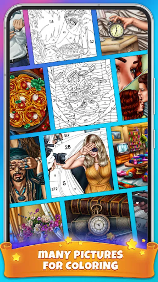 Immerse yourself in a world of adventures, melodramas and detectives. Adventures await you from the moment you open the color by number game! It's time to color the pictures.