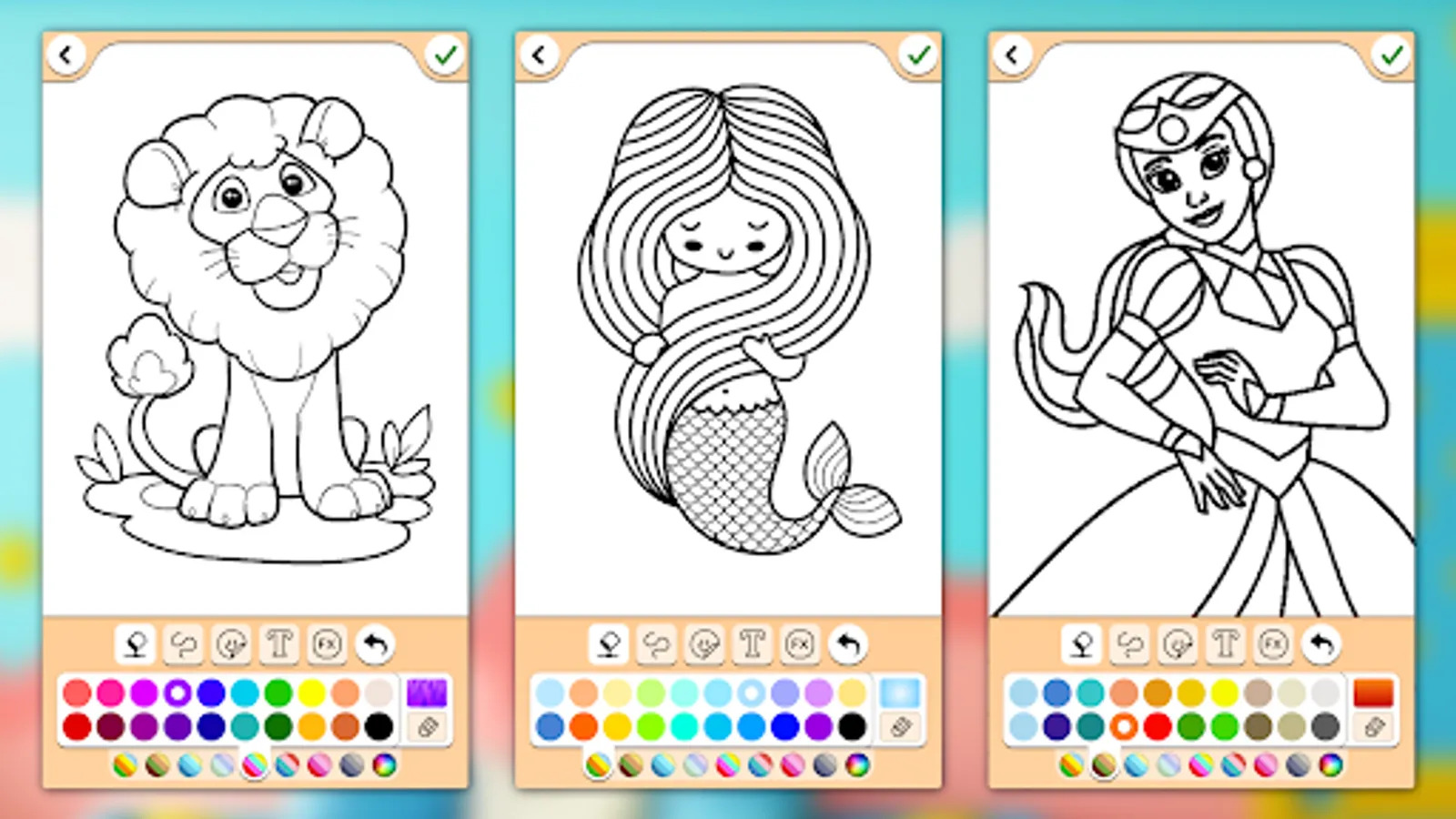 In this fun and educational game we have included more than 300 coloring pages. All designs are completely free. The easy to use interface in this game is great for kids. But with lots of fun options it's also great for older children.