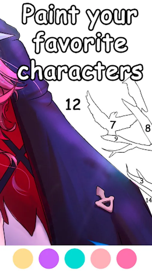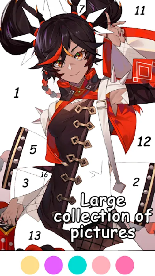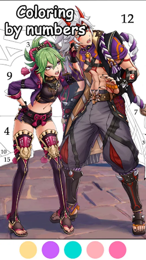 Each number stands for a certain color, choose a color and paint by numbers future genshin impact character.