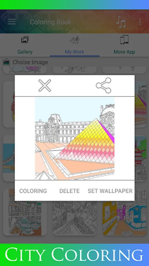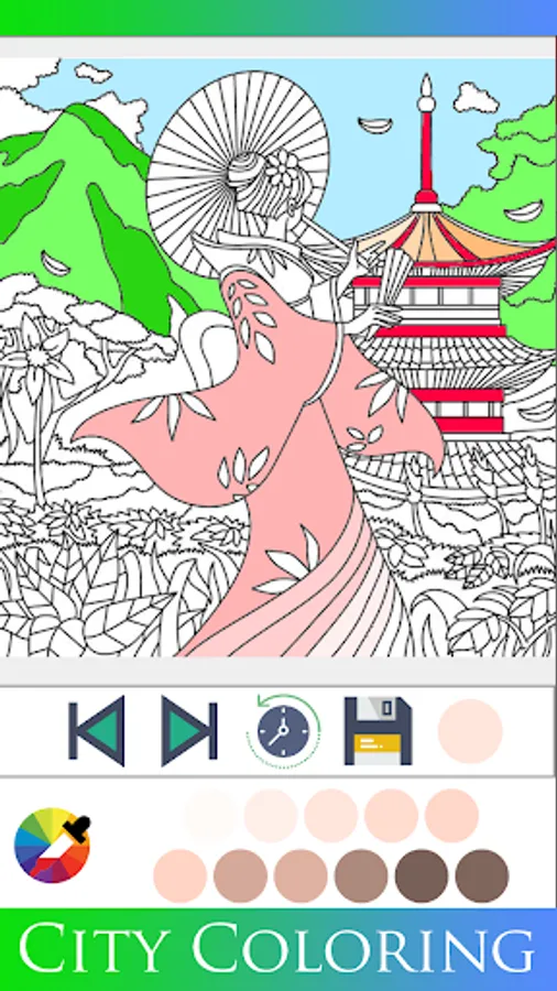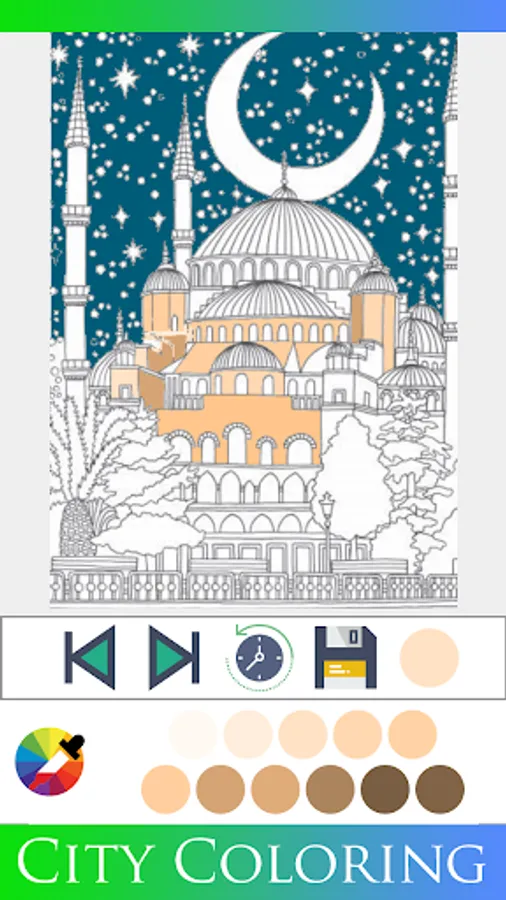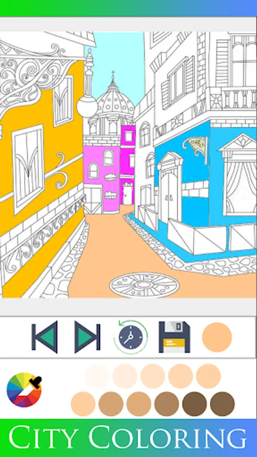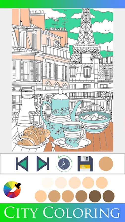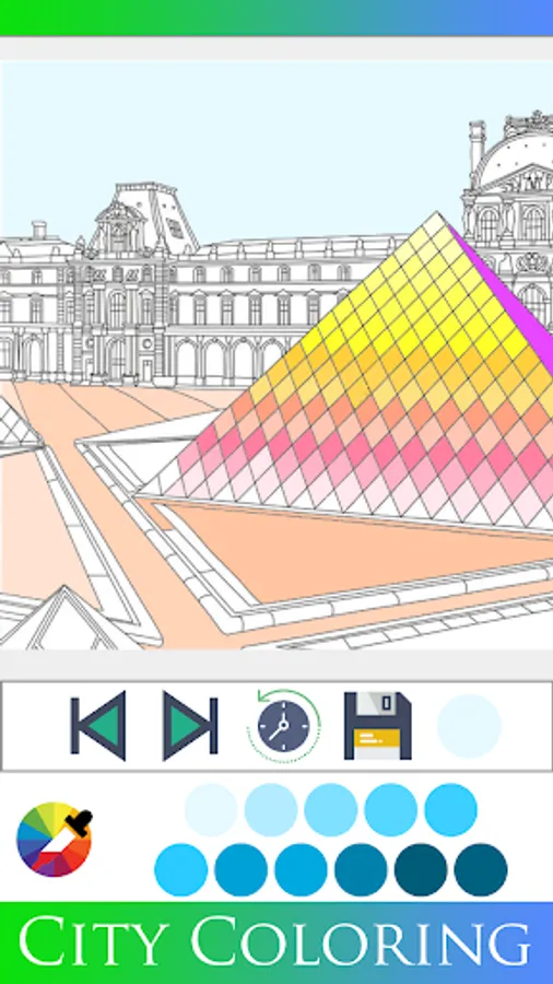 City coloring game is a fun game that you can color images of cities from all over the world like America with Liberty, French Eifel Tower, Colosium, Spain, China Pagoda, London Cathedral, New York City Building and India Ta'jmahal. This city coloring game can color the city image with the color you like, you have lots of borderless color choices and you can color it just by touching the number of images you want to color.