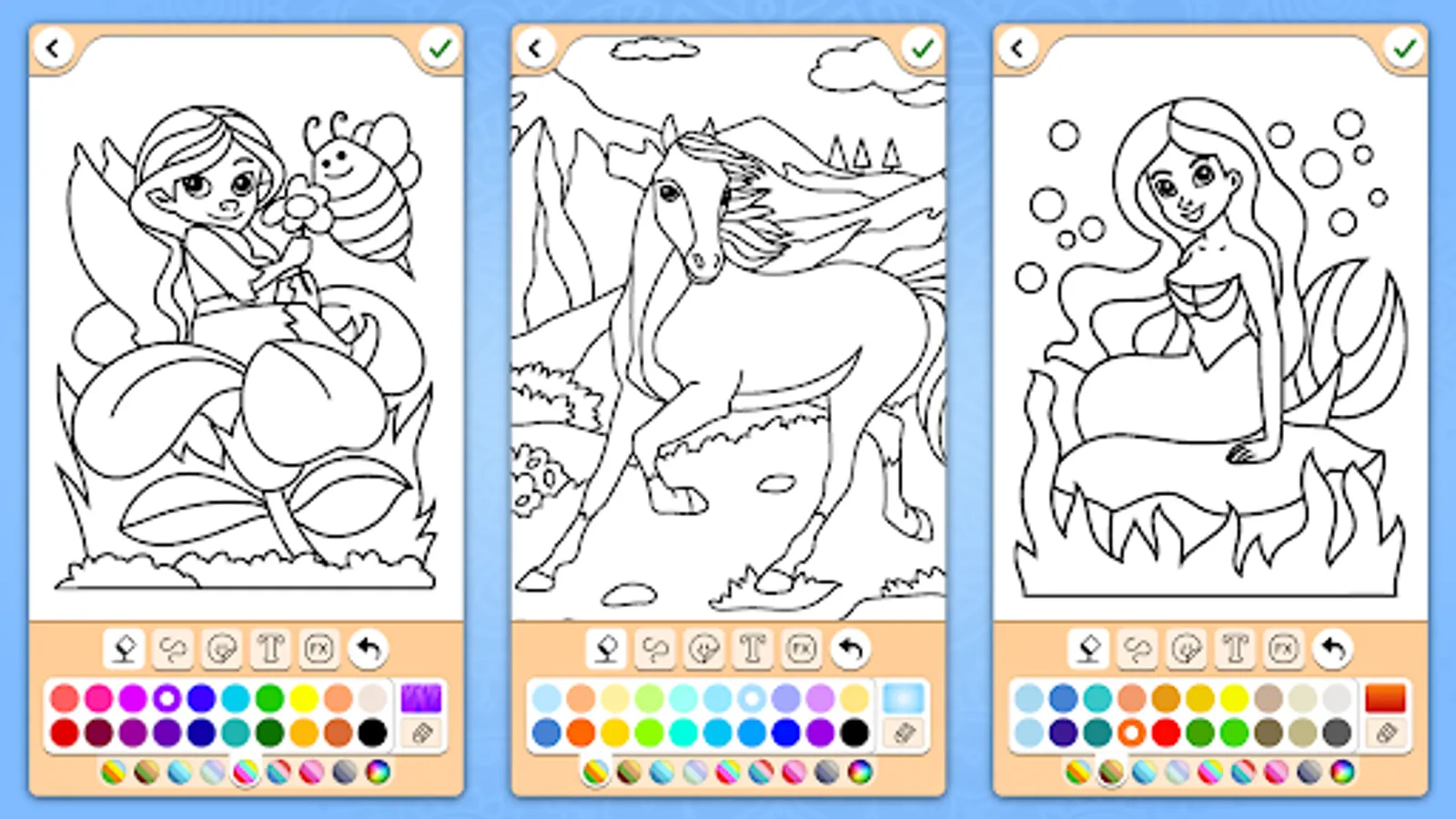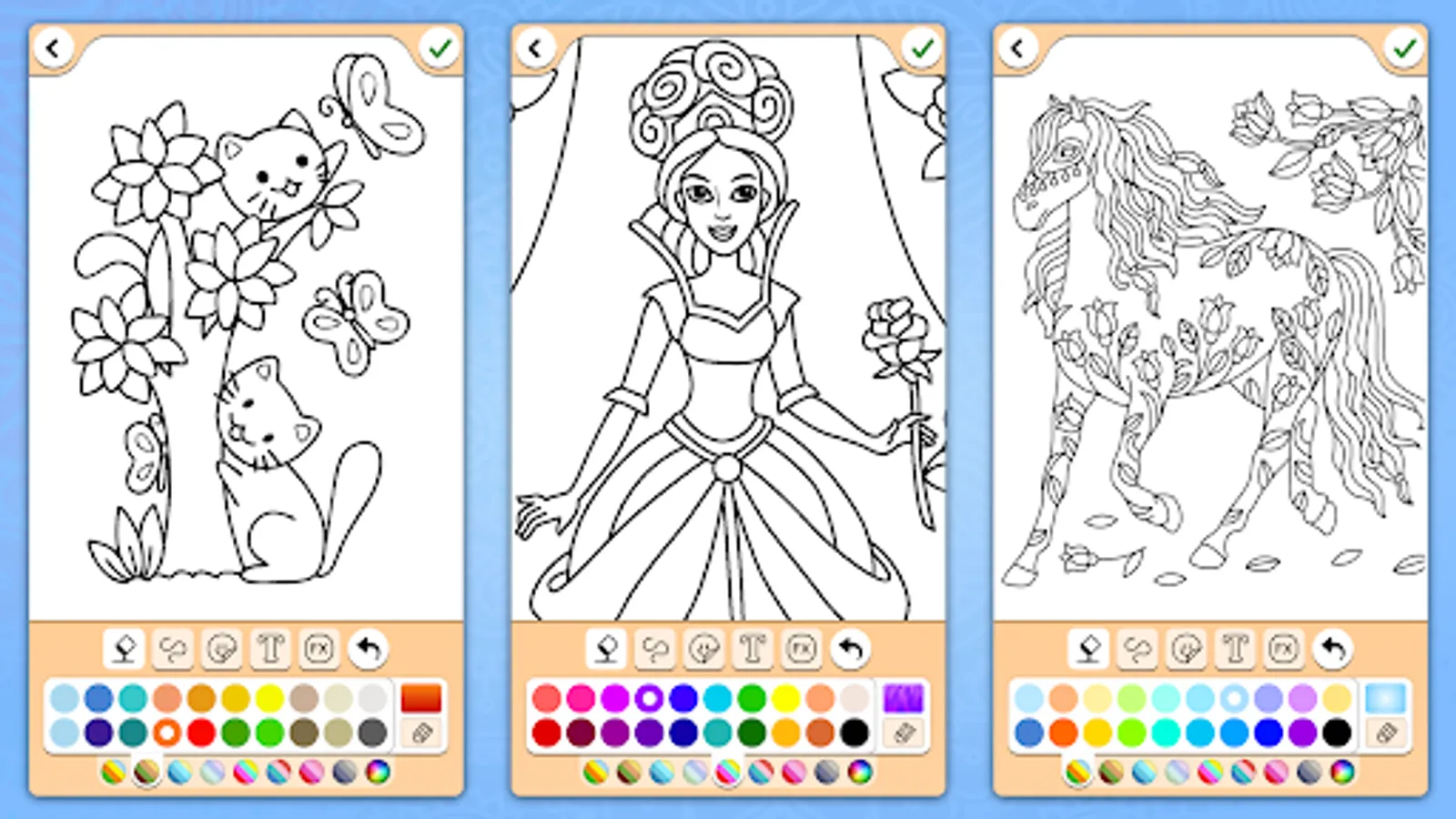 Free app for girls which love to color and draw. Great game for all ages. Lots of designs for girls of clothes and fashion, hair and hairdressing salon, princesses and make-up, horses and fairies.