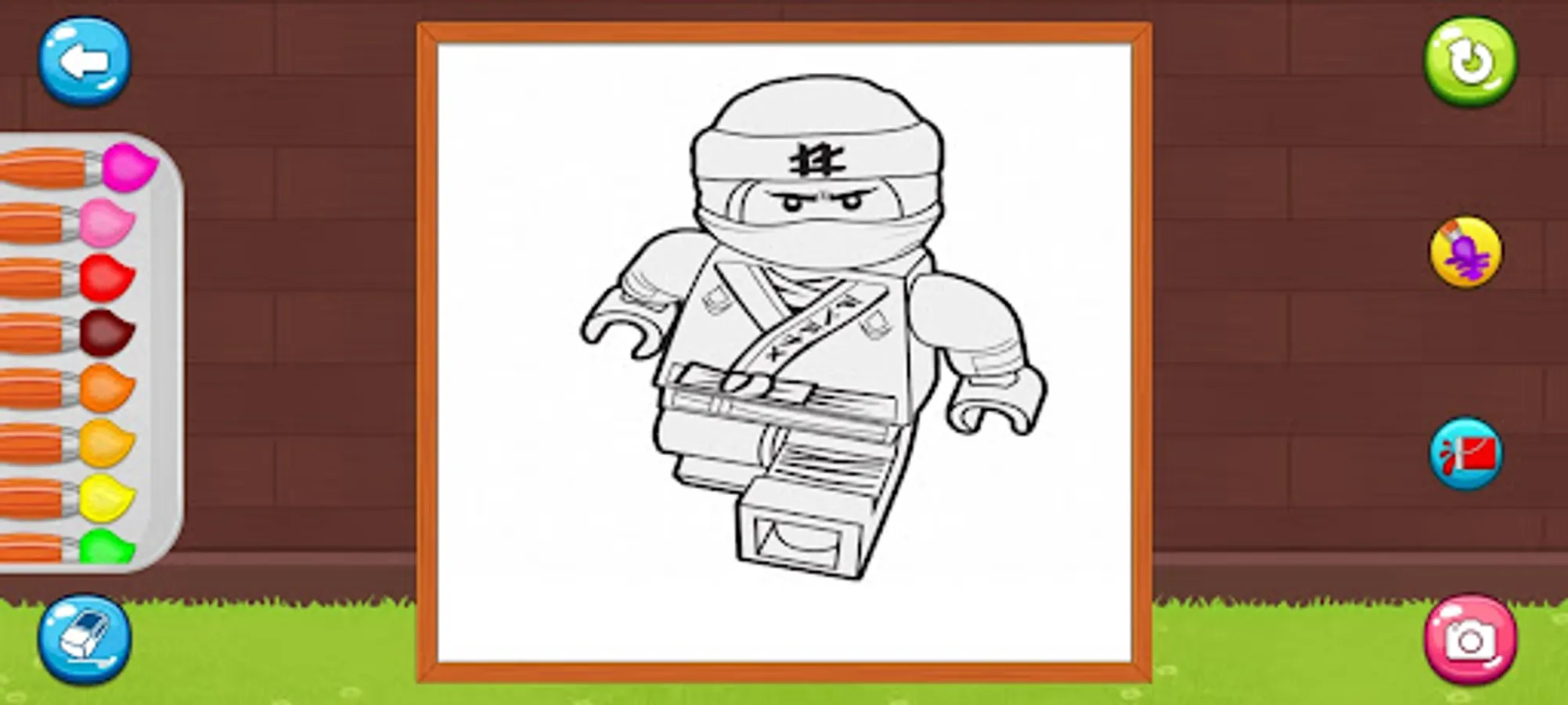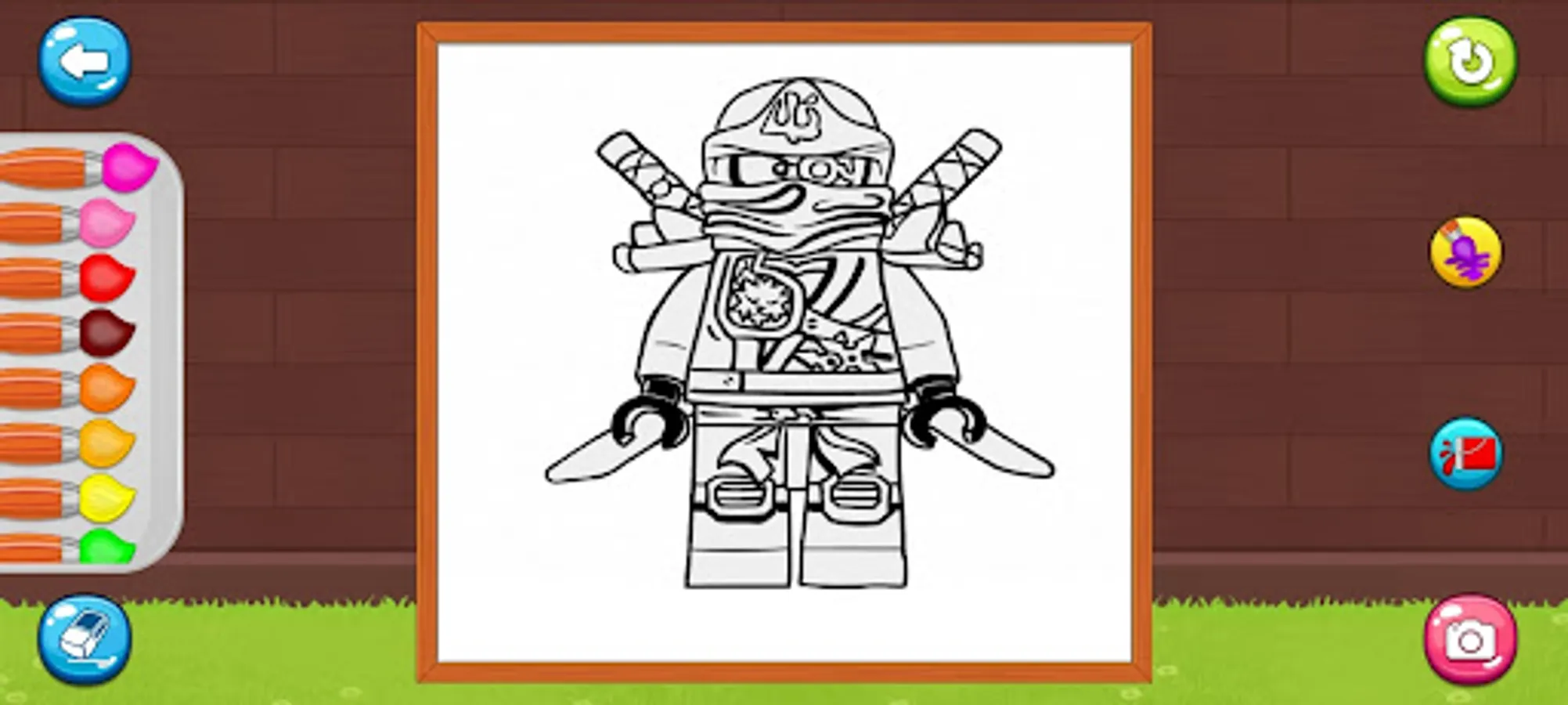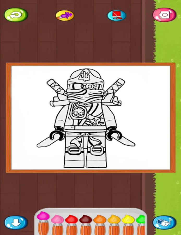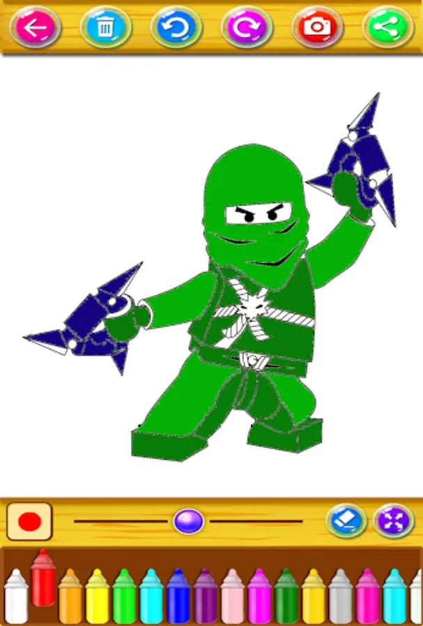 Ninja character coloring game features;