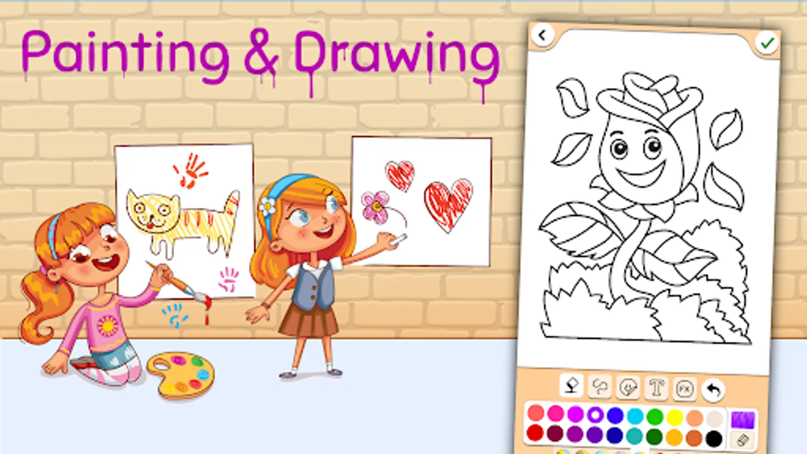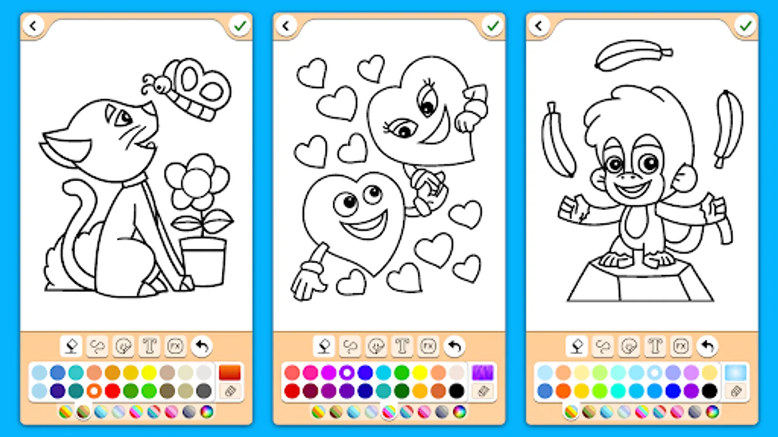 Drawing and painting gives lots of fun and is great for the creativity. This game is a free coloring book for toddlers, for children and for adults. We put many free coloring pages in the app which you can color and paint and share with family or friends. But for more creativity it is also possible to create your own drawing.