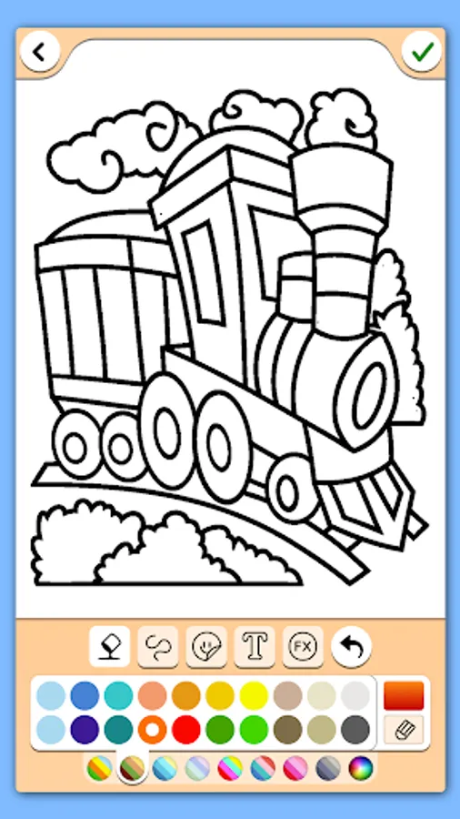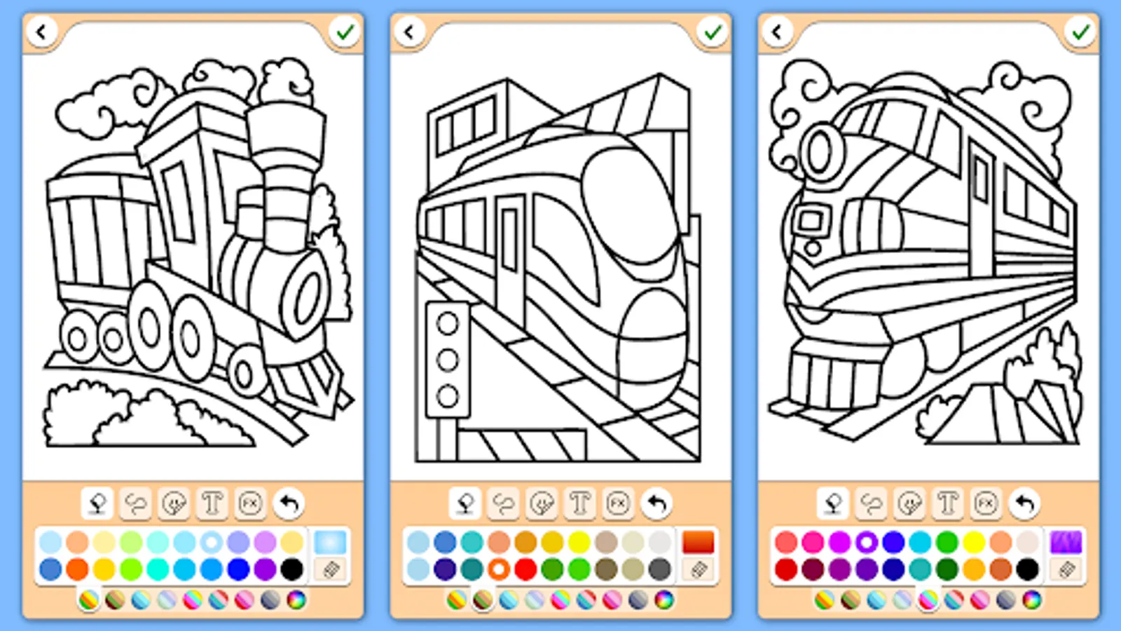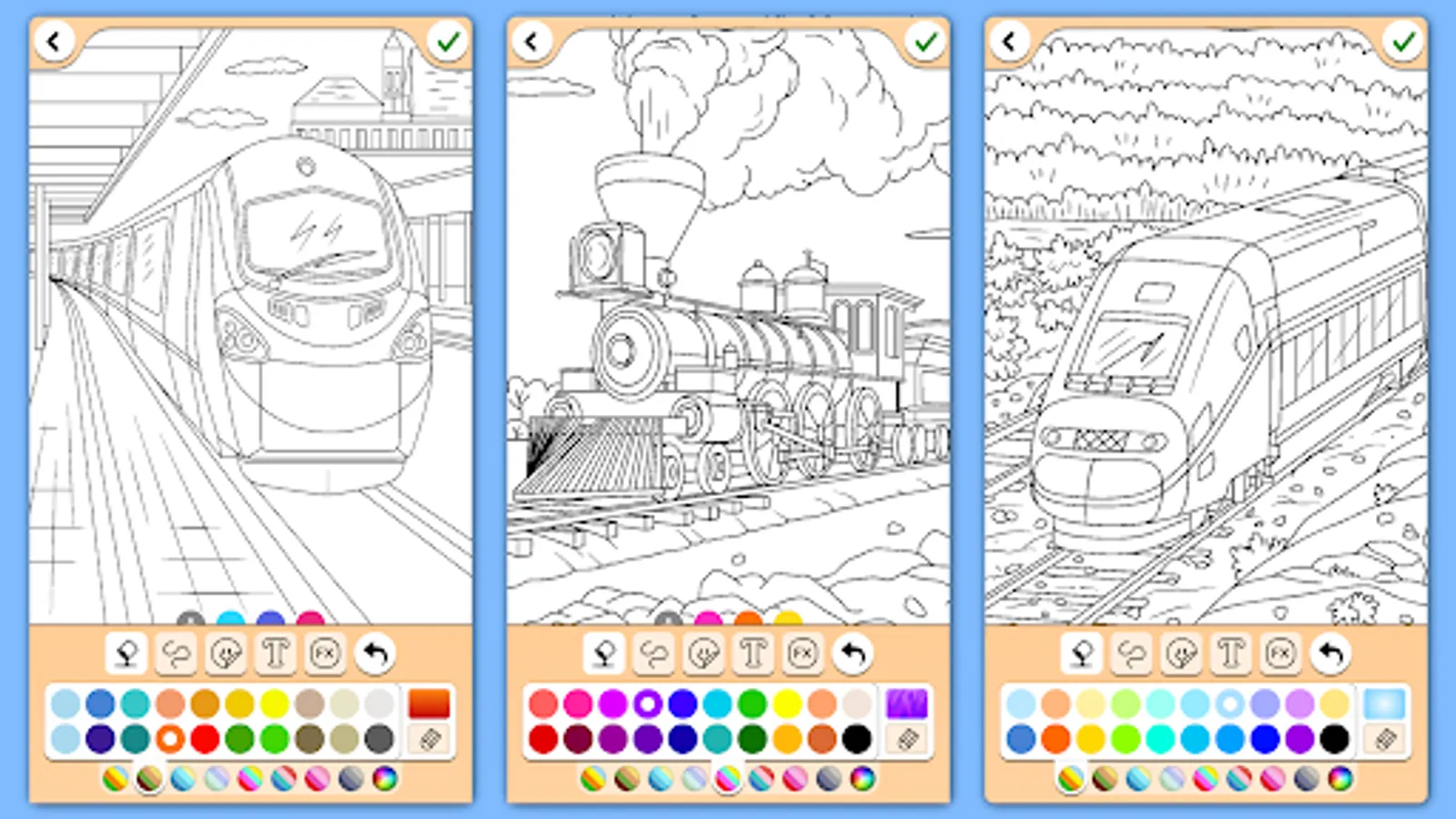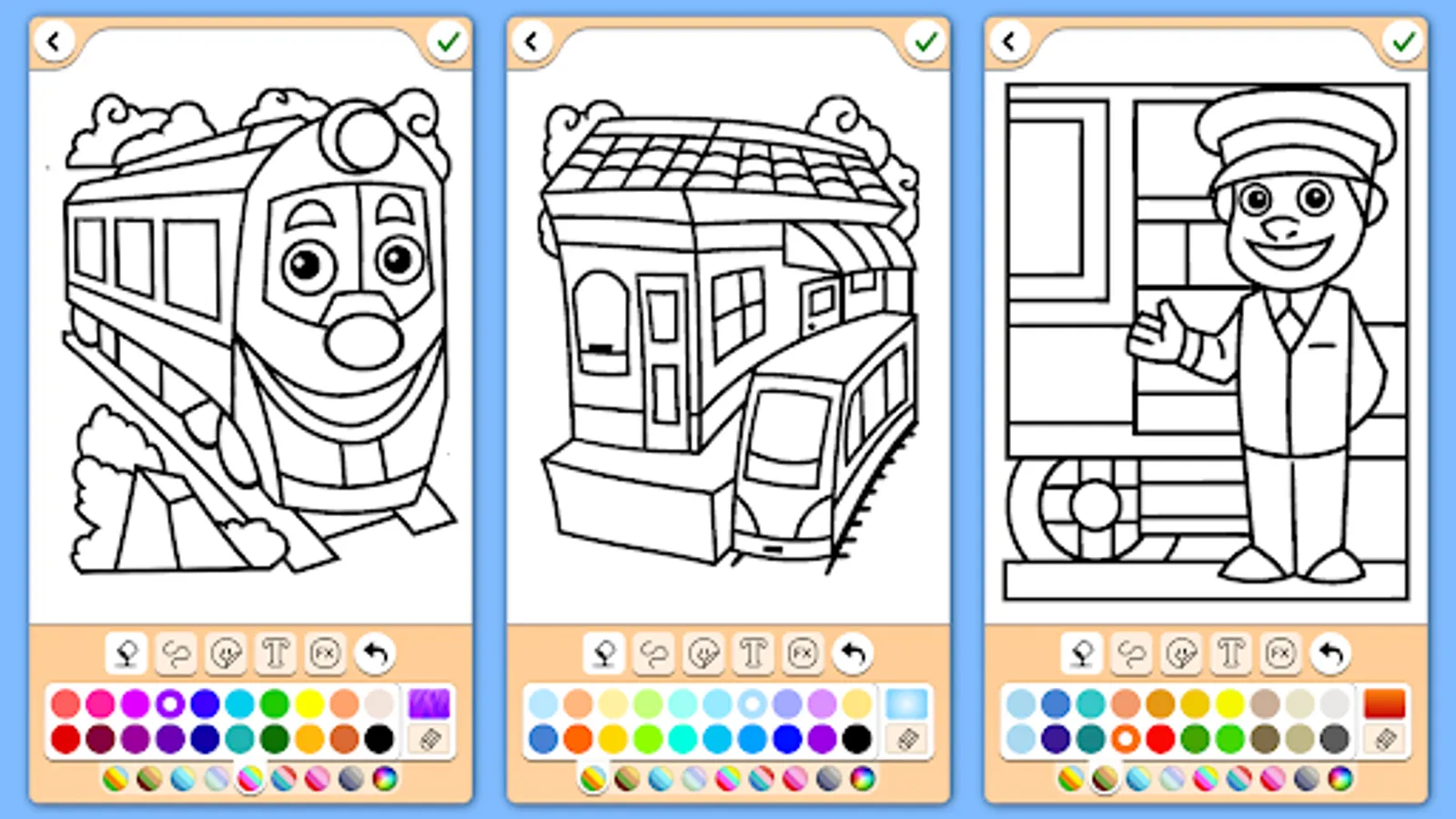 Train coloring book is an educational game for stimulating the creativity of toddlers and preschoolers. If you or your little boy or girl loves to coloring pages and loves railroads, they will love this app!